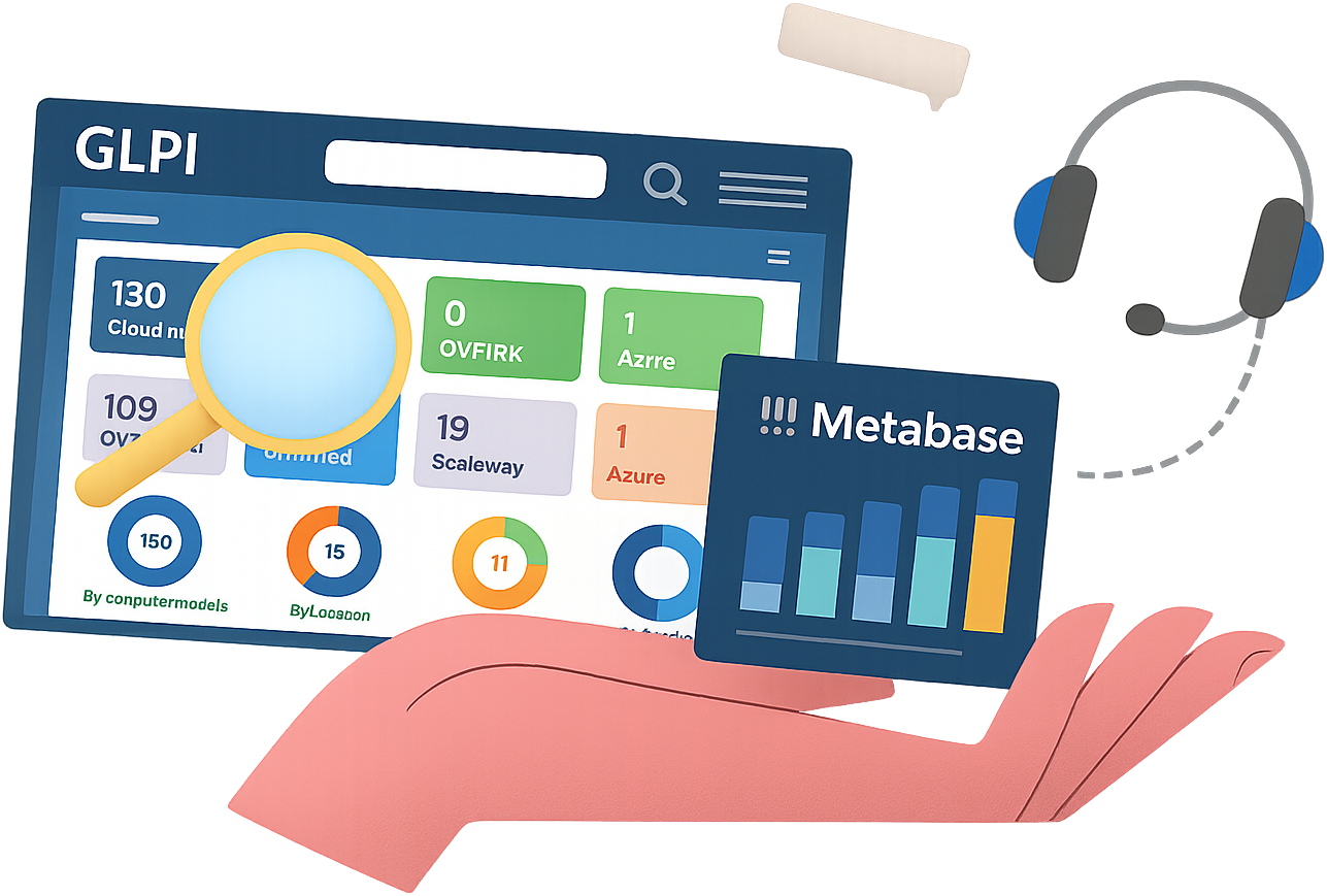 Implementamos, optimizamos y acompañamos plataformas de soporte y analítica con GLPI, Metabase y AWS para que tu operación funcione con eficiencia y claridad.